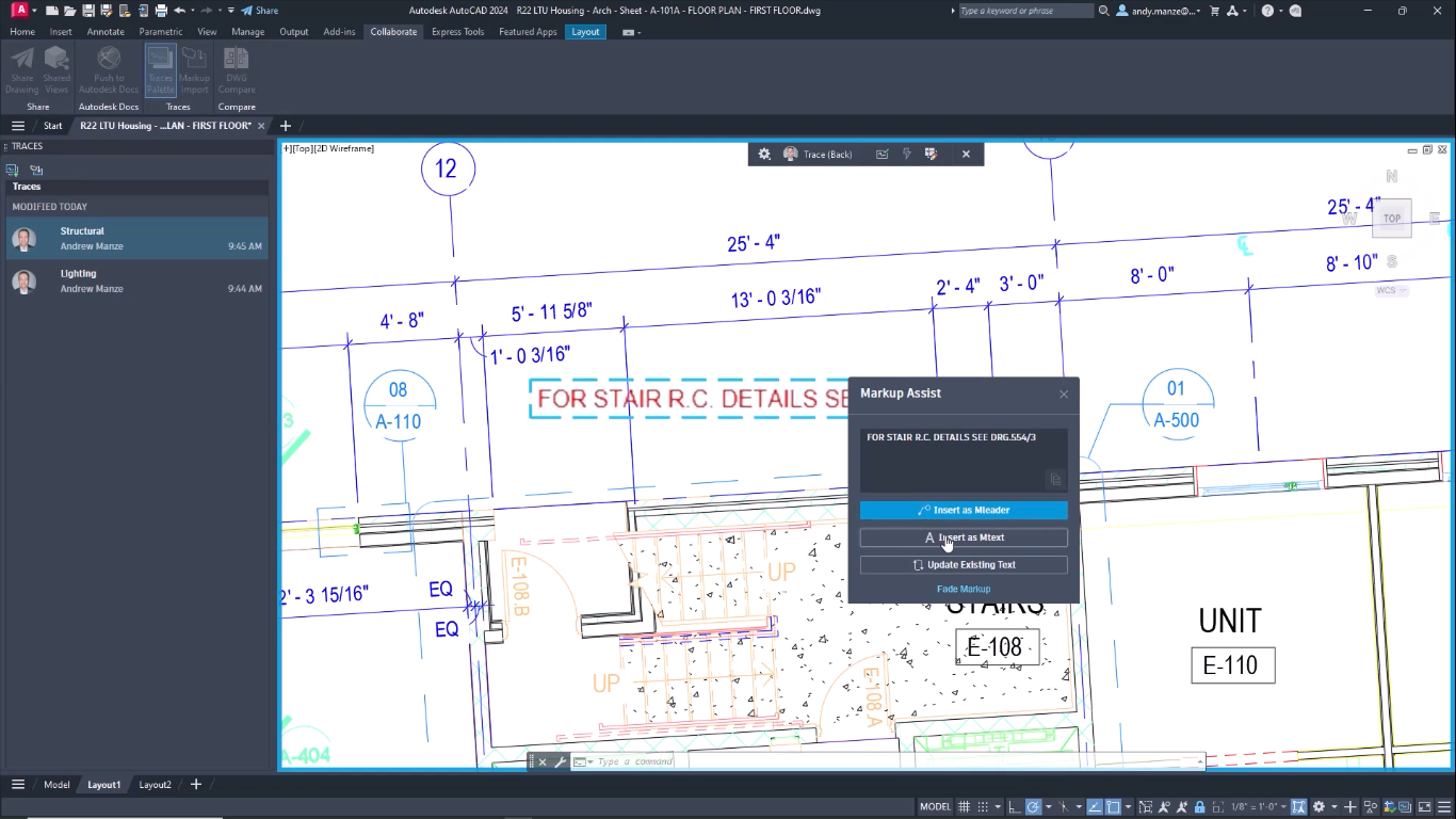 as características de automatización anticipan el próximo movimiento del usuario para ayudarlo a completar su tarea más rápido. En AutoCAD, Importación y Asistencia de Marcado ayudan a los dibujantes a iterar más rápido. Asistencia de Marcado utiliza aprendizaje automático para identificar marcados en formatos impresos o digitales y ayudar a incorporar cambios de manera más fácil y rápida. Cuando se trata de reemplazar referencias de bloques, los Bloques Inteligentes de AutoCAD: Reemplazo sugieren bloques similares de la biblioteca de bloques para elegir.