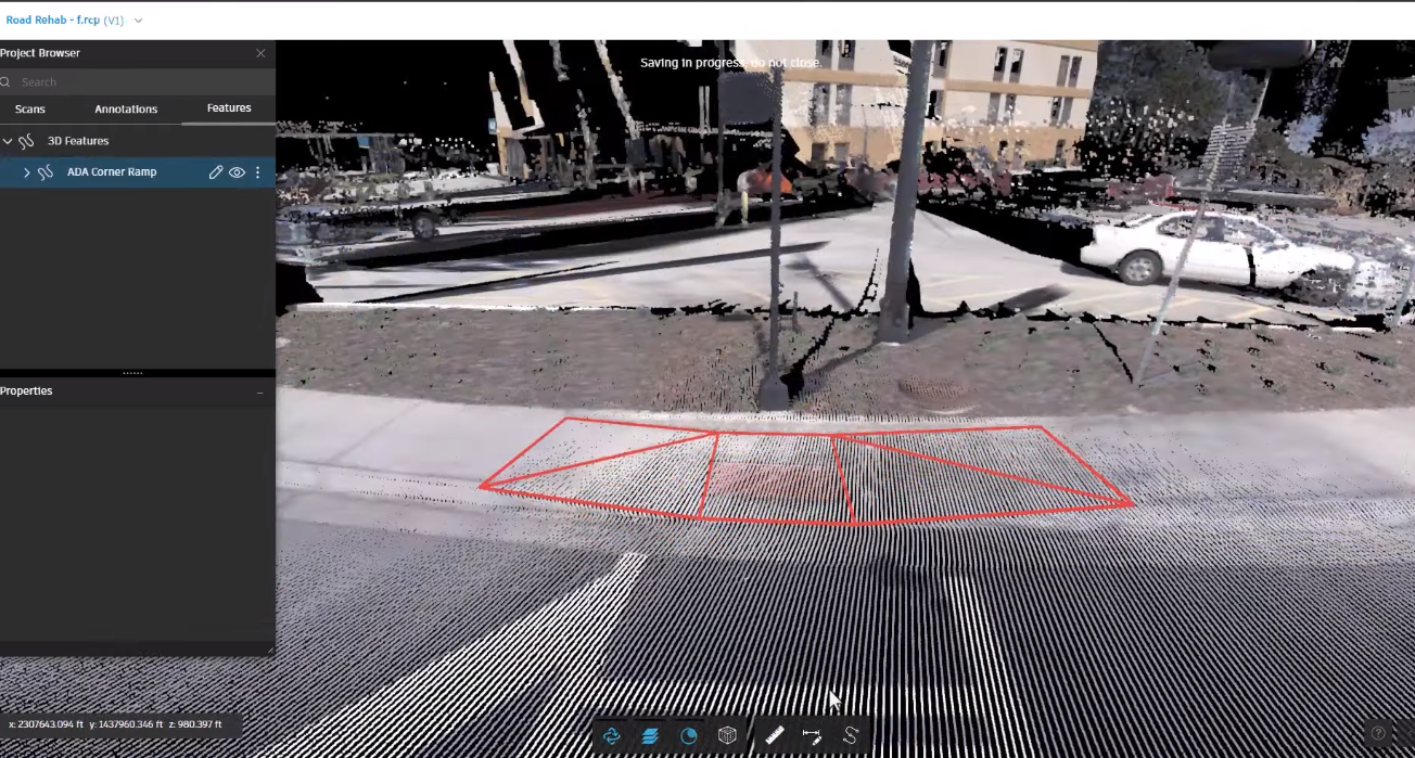 Para ReCap Pro 2025, se han mejorado los flujos de trabajo de Scan2Design añadiendo capacidades adicionales de extracción de características. En el pasado, extraer características 3D como rampas ADA y geometría de entradas de grandes nubes de puntos era una tarea manual que consumía mucho tiempo.