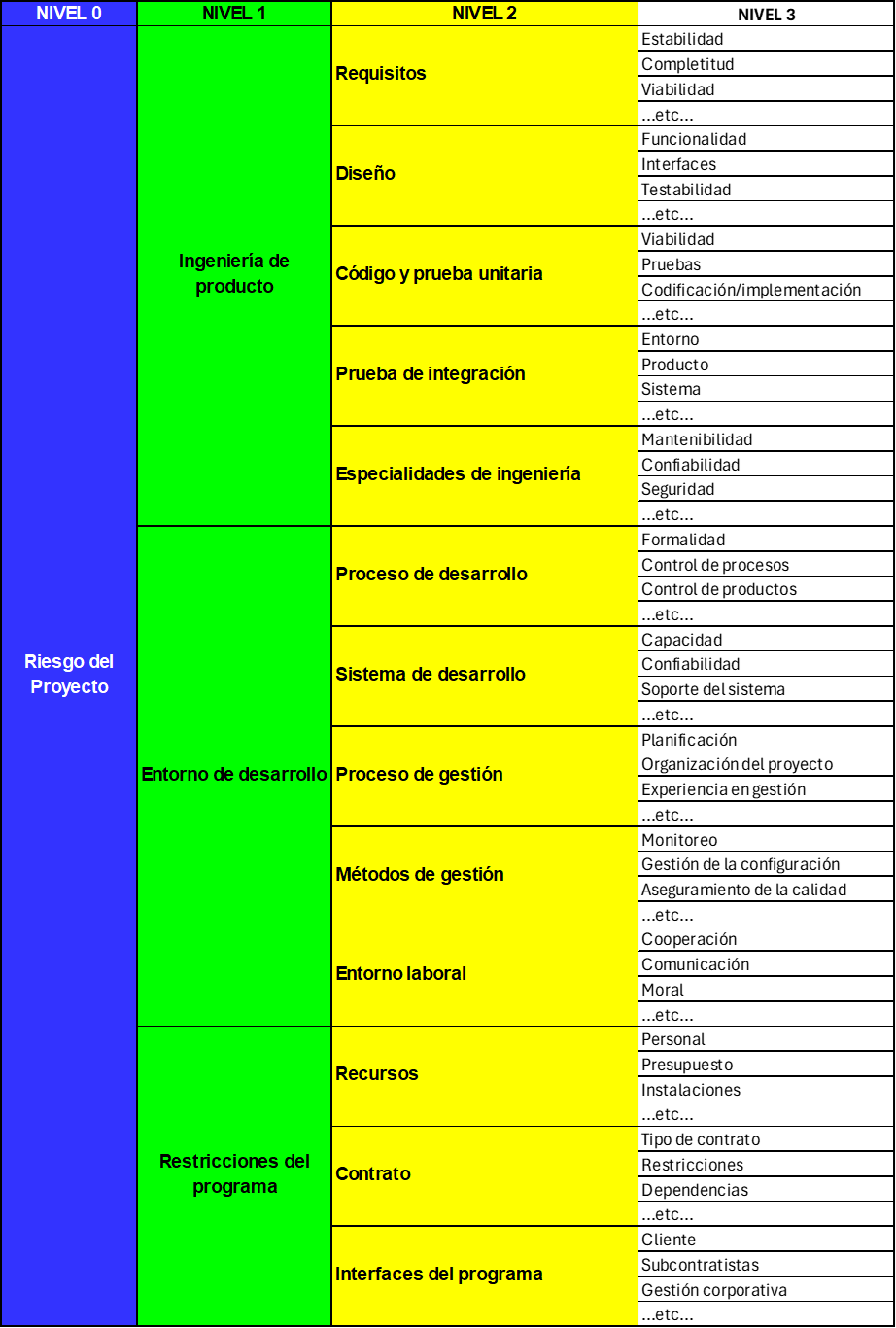 Tabla 3. Estructura de Desglose de Riesgos (RBS) para Proyecto Genérico