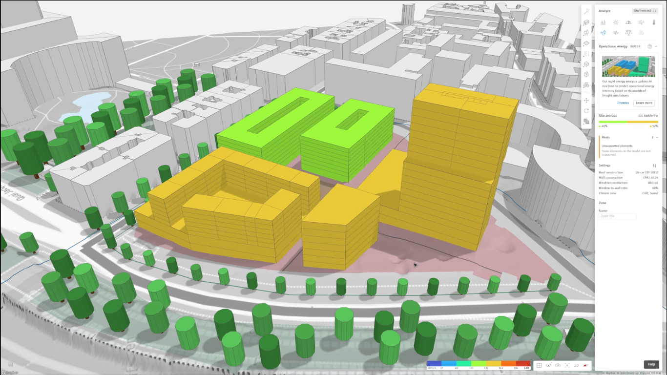El aprendizaje automático acelera el proceso de análisis porque, a diferencia del análisis computacional convencional, puede hacer predicciones precisas, que antes eran imposibles, basadas en simulaciones previas. Esto significa que se recibirán comentarios en segundos, lo que permite evaluar e iterar los diseños de manera más rápida y fluida. Los análisis rápidos de Forma predicen los resultados para las condiciones de ruido y viento y la energía operativa para el diseño y la planificación en etapas tempranas, ayudando a los equipos AEC a diseñar las comunidades saludables y sostenibles que imaginaron para sus clientes. El análisis rápido ofrece una conjetura informada casi instantánea que es comparable en precisión a un análisis completo gracias al aprendizaje automático. Se puede usar como un pre-análisis para la experimentación rápida y complementarlo con un análisis completo para una verificación más detallada.
