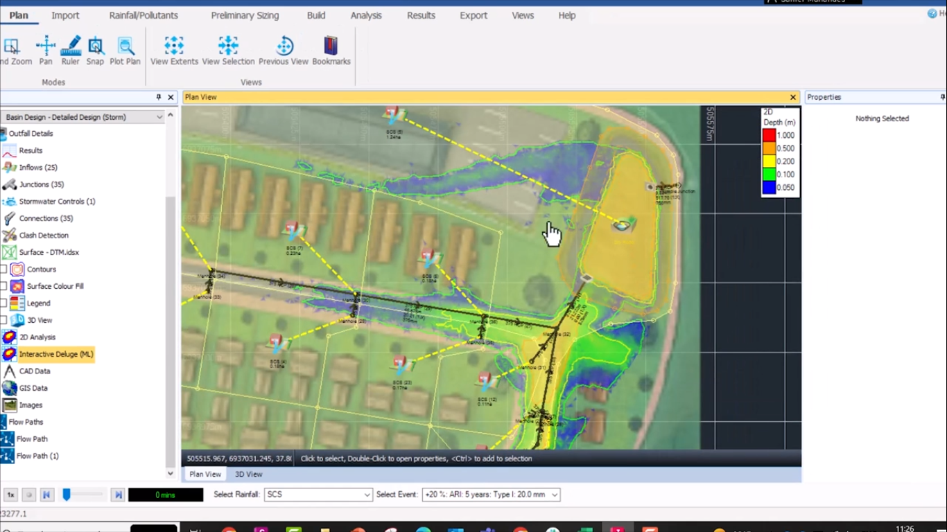 Cuando se trata de diseño de drenaje, el análisis de aguas pluviales es imprescindible para el diseño de entornos resilientes que puedan soportar condiciones extremas. Con la herramienta Machine Learning Deluge de Autodesk InfoDrainage, los diseñadores de drenaje pueden generar rápidamente mapas de inundaciones sin tener que volver a ejecutar simulaciones computacionales complejas. La herramienta analiza y predice el canalización y el estancamiento del agua, proporcionando comentarios en vivo para ayudar a completar un análisis del sitio más rápido. Esto permite una toma de decisiones más informada en el proceso de diseño de drenaje, ya sea ubicando áreas óptimas para controles de aguas pluviales o ayudando a los propietarios e infraestructuras a evitar áreas problemáticas al ubicar sus estructuras.