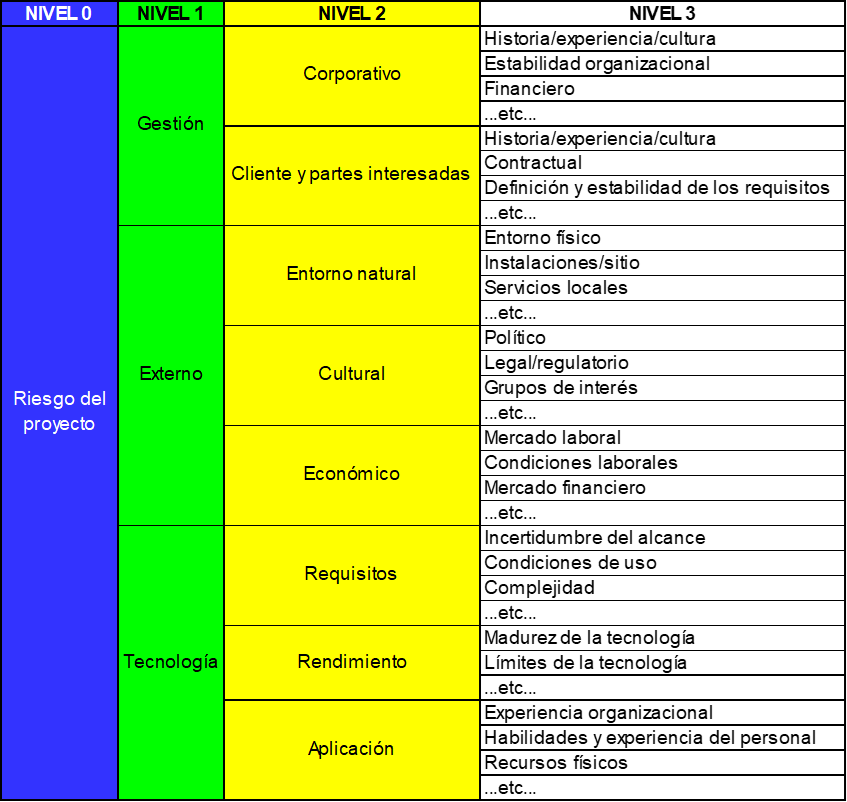 Fuente: Traducción y adaptación del artículo 'Use a risk breakdown structure (RBS) to understand your risks' del PMI.